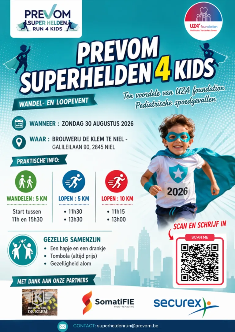 Vanuit deze visie organiseren wij de Prevom Superhelden Run 4 Kids — een evenement waar sport, plezier en solidariteit elkaar ontmoeten.